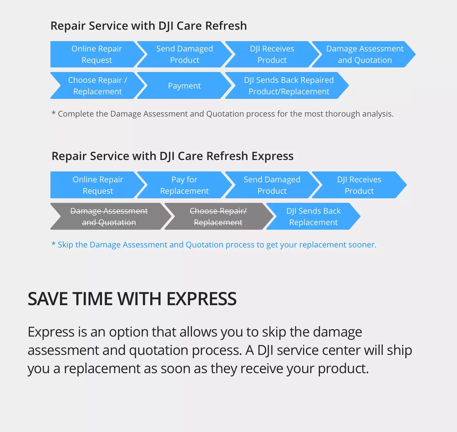 - Supersnelle vervanging van uw drone (meestal binnen 1 week).