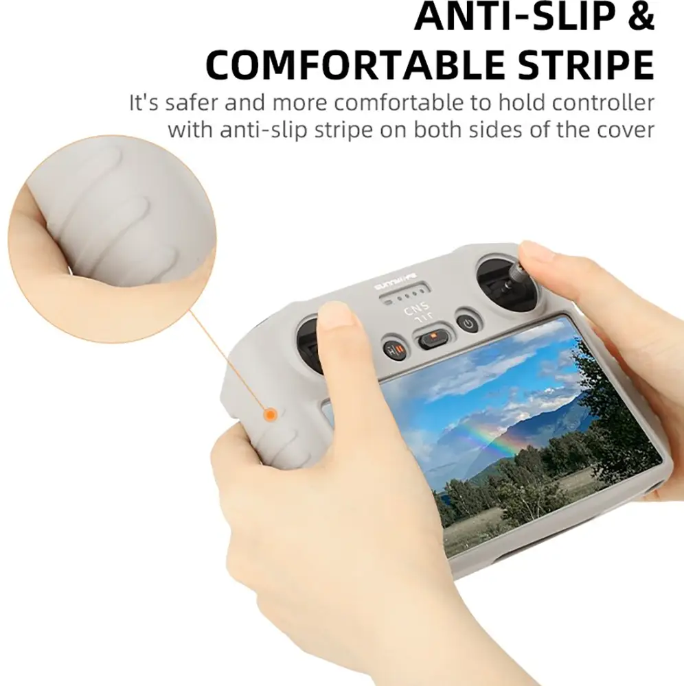 Het ingebouwde zonnescherm blokkeert effectief ongewenst licht van het scherm, waardoor het gemakkelijker wordt om je drone te zien en te besturen in heldere omstandigheden. De antisliptextuur helpt ook om te voorkomen dat zweterige handen van de afstandsbediening glijden, zodat je altijd een veilige en comfortabele grip hebt.
