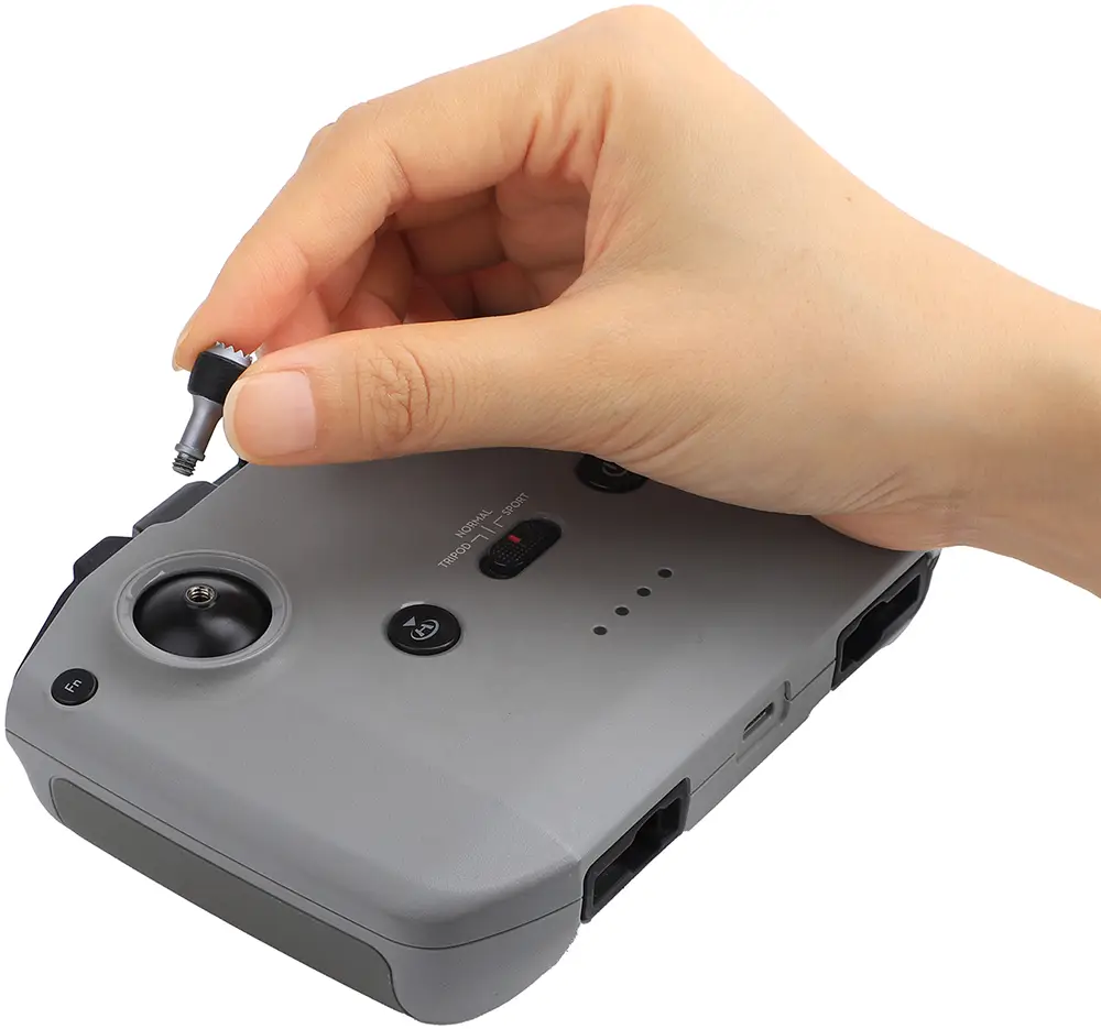 Het monteren van de controller is zeer eenvoudig. Het enige wat je hoeft te doen is hem op je DJI-controller te plakken en vervolgens de sticks op hun plaats te schroeven. Als je besluit hun positie te veranderen of de controller wilt verwijderen, warm je de montagetape gewoon op met bijvoorbeeld een föhn en de controller zal vanzelf loskomen.