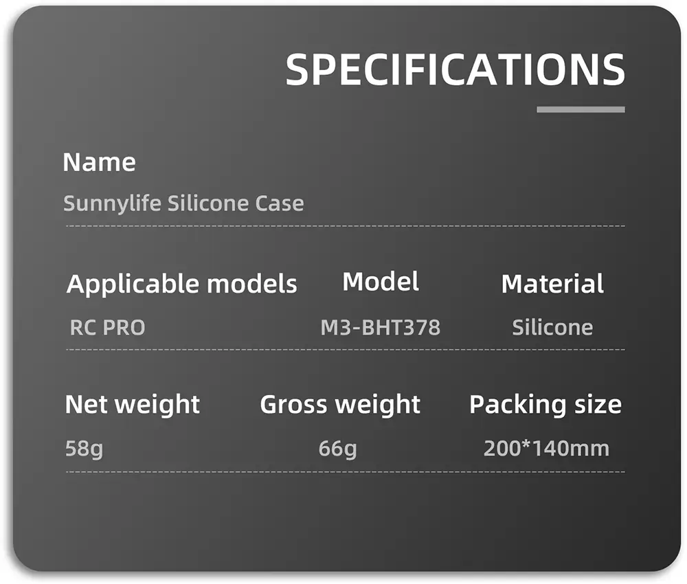 - Anwendungsmodell: Diese Silikon-Schutzhülle wurde speziell für RC PRO entwickelt. Obwohl es die Schönheits- und Schutzfunktion garantiert, beeinträchtigt es die Verwendung überhaupt nicht.