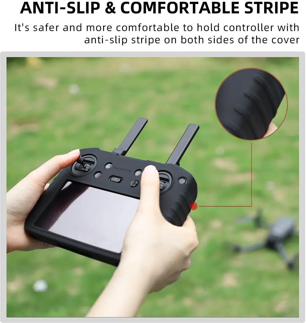 - Rutschfestes Texturdesign: Beim Fliegen im Freien kann die weiche Silikonschutzhülle das Schwitzen und Verrutschen der Hände wirksam verhindern, wodurch sie sicherer und bequemer zu halten sind.