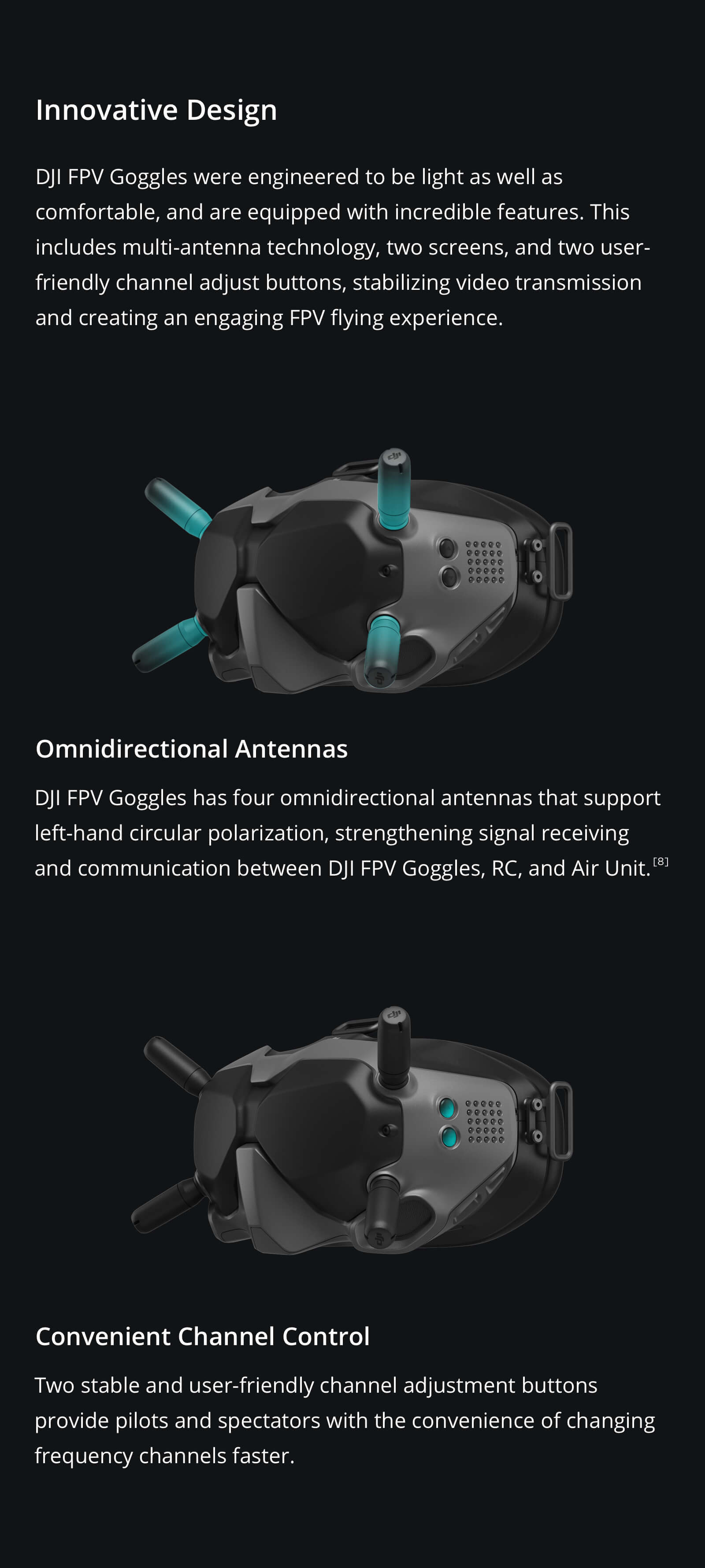 Digitale FPV is de toekomst en DJI bewijst met de fenomenale DJI FPV digitale goggles dat het ook anders kan. Nu kun je met je drone betrouwbaar racen over grote afstanden met vloeiende video beelden in hoge resoluties. De nieuwe DJI FPV-bril met digitale beeldoverdracht biedt hoge resolutions (720p) met een lage latency (tot 28ms) waardoor je helemaal op kunt gaan in het vliegen. Drone racen was nog nooit zo intens! Deze digitale FPV bril is het summum voor race drone piloten en FPV enthousiastelingen.