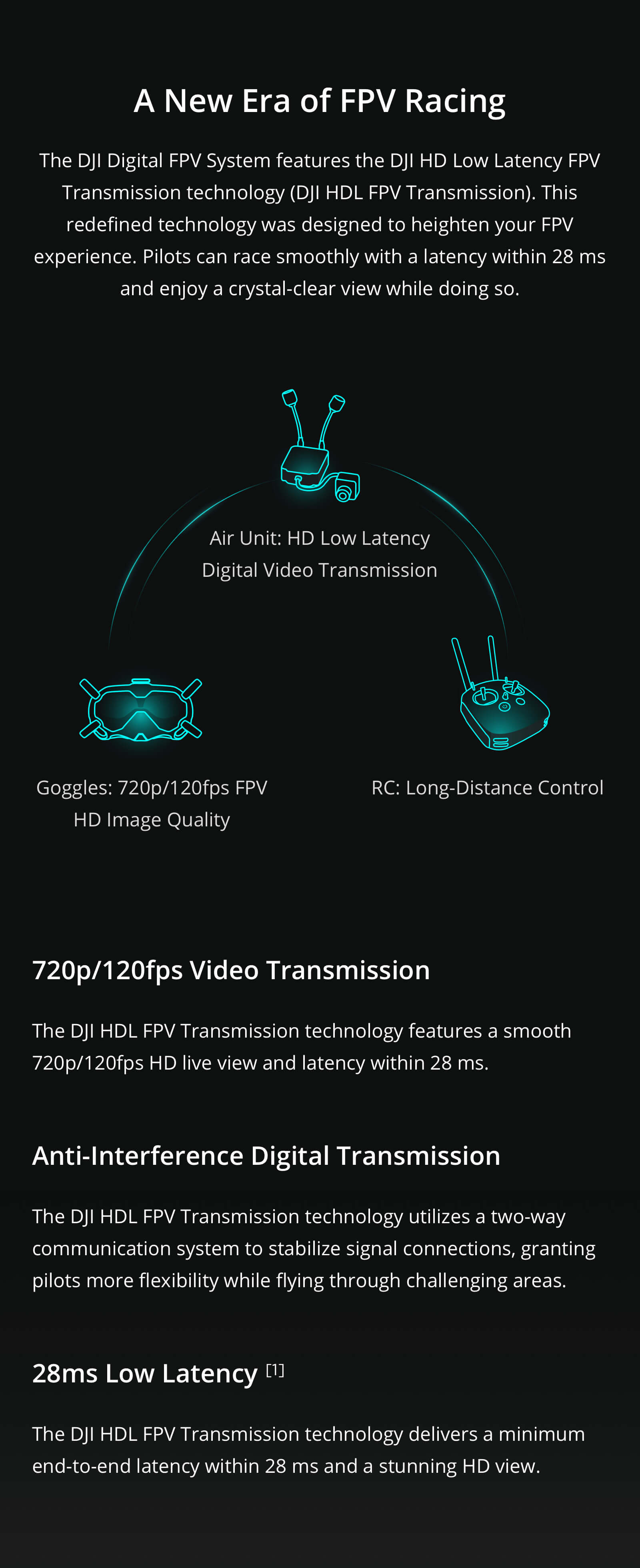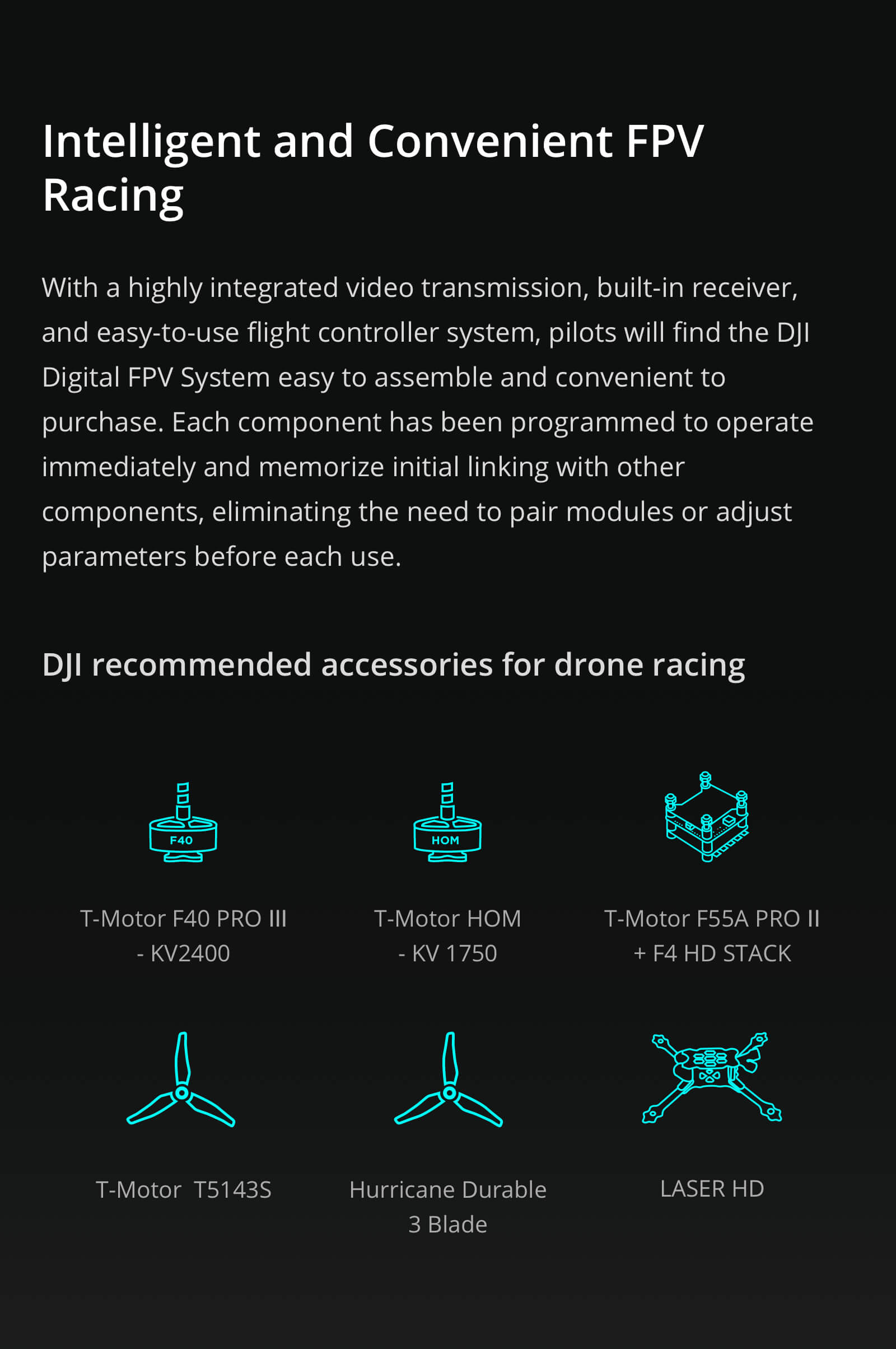 DJI heeft de drone-race-industrie opnieuw gedefinieerd met het nieuwe digitale FPV-systeem. Het levert lagere latentietijden tot 28 ms, een maximaal transmissiebereik van 4 km, een verbluffende HD 720p / 120fps resolutie en, belangrijker nog, een onvergetelijke FPV-vliegervaring. Drone racen wordt nu nóg intenser!