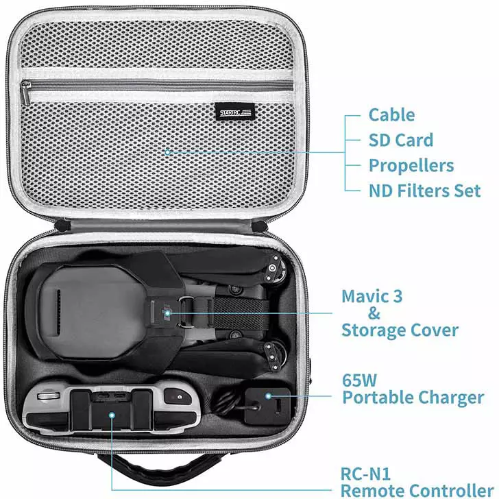 - Large Capacity : Can store DJI Mavic 3 units, transmitters, chargers, propellers, cables and more at the same time, making it perfect for travel or home use