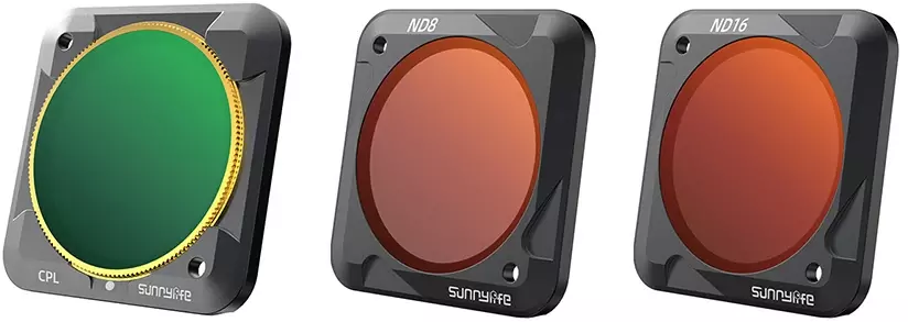 Neutral Density (ND) and polarizing (PL) drone camera filters are intended to reduce and / or filter the amount of light that enters the camera. When applied correctly, ND / PL filters produce richer colors and greater contrast (such as clouds against a clear sky). Videos become smoother and cinematic due to an optimal shutter speed in combination with recording speed (frames per second). Lens filters also protect your camera lens from scratches and dust.