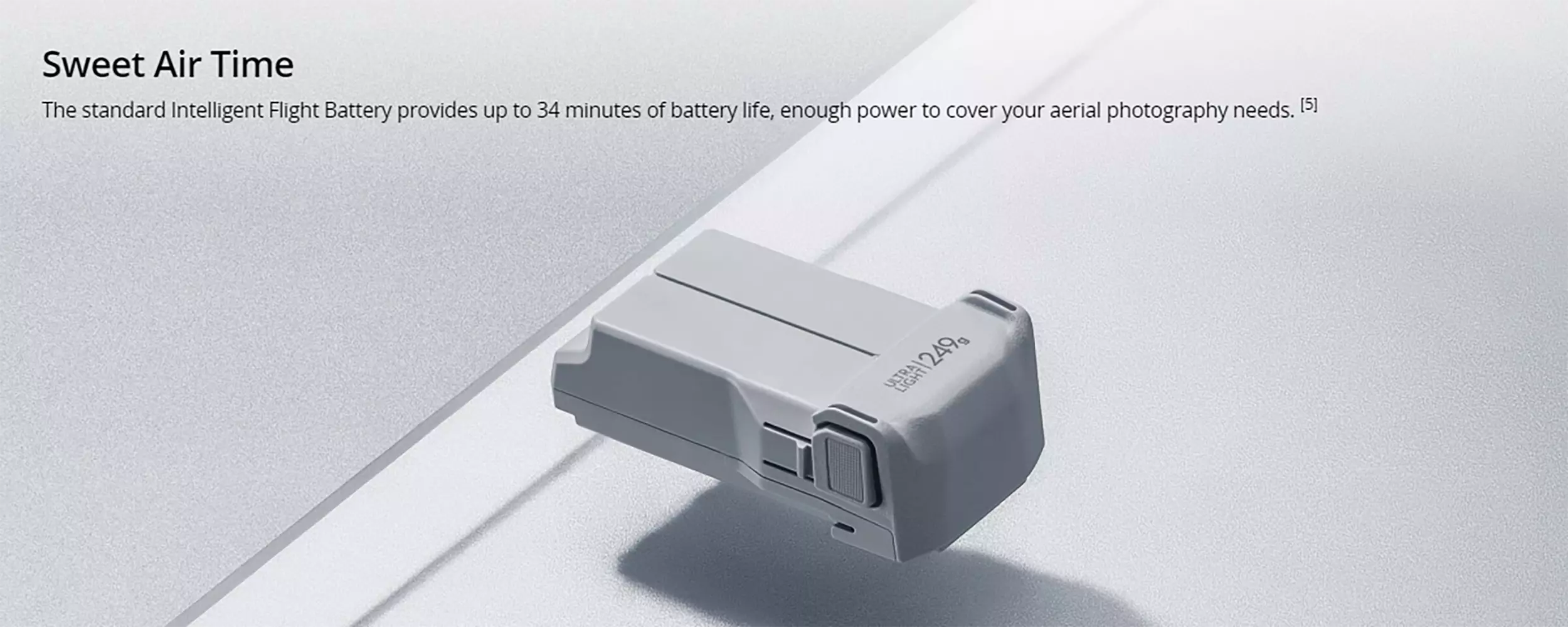 The standard Intelligent Flight Battery provides up to 34 minutes of battery life, enough power to cover your aerial photography needs. [5]